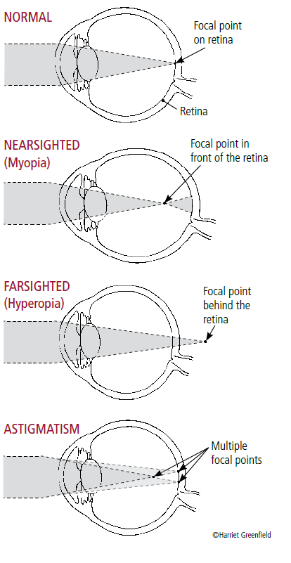 When the eye sees normally, light focuses directly on the retina, producing a clear image. But in some people, images appear blurred because the eye focuses light rays either in front of or behind the retina. These problems are not eye diseases, but common conditions known as refractive errors of the eye. Although laser surgery procedures such as LASIK have become increasingly popular as a way to correct refractive errors, these techniques are usually most appropriate for people younger than 50. For that reason, refractive errors in older adults are most often corrected with eyeglasses or contact lenses.
